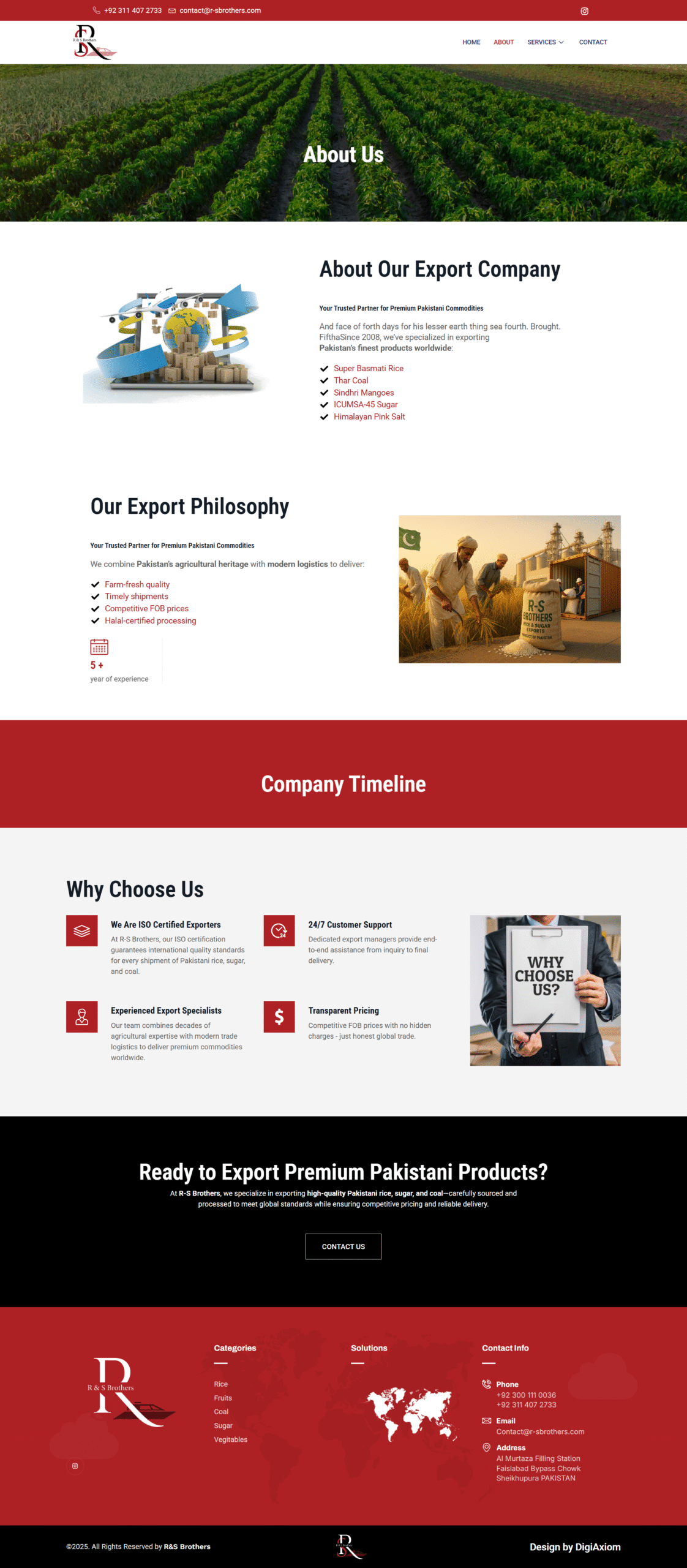 RS Brothers is a trusted Indian exporter specializing in premium-quality vegetables, fruits, and rice. Focused on freshness, global standards, and timely delivery, the website—professionally developed by Digiaxiom—offers insight into their sourcing, packaging, and international shipping expertise for agricultural products.